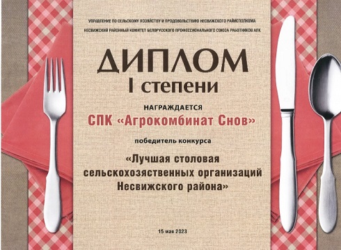 Продукция производства СПК «Агрокомбинат Снов» участвовала в конкурсе и завоевала 5 дипломов по следующим наименованиям: