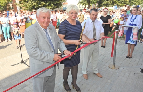На фото: символичную красную ленточку перерезают член Совета Республики Национального собрания Республики Беларусь, председатель правления СПК «Агрокомбинат Снов» Николай Вячеславович Радоман, директор универсама Виктория Викторовна Томашевская и председатель Несвижского районного исполнительного комитета Иван Иванович Крупко.