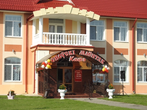 На фото: Кафе «Сноускi маёнтак». Кафе разместилось на первом этаже, рассчитано на 80 посадочных мест. Принимаются заказы на проведение юбилеев, свадеб, других мероприятий.
