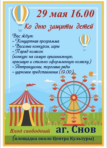 29 мая в 16:00 в аг. Снов пройдут праздничные мероприятия, посвященные Дню защиты детей.